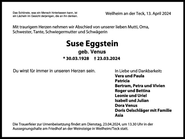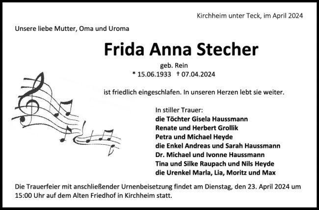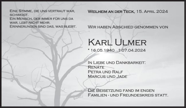 TodesanzeigeVon Benny Kuder13. April 2024Kommentar hinterlassen