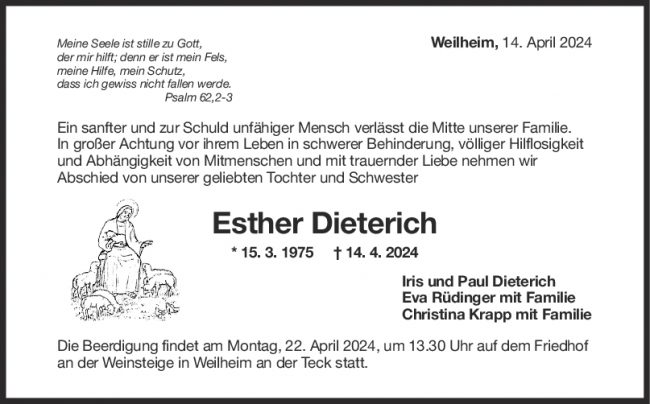 TodesanzeigeVon 13. April 2024Kommentar hinterlassen