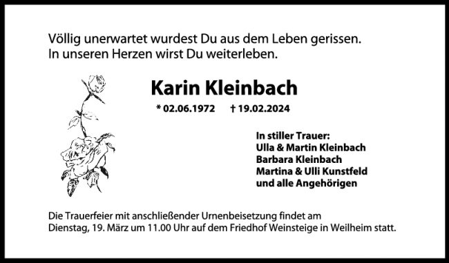 Trauer Karin Kleinbach