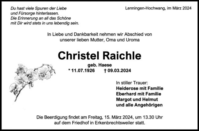 Trauer Christel Raichle