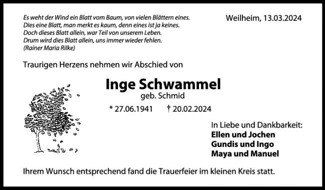 Trauer Inge Schwammel